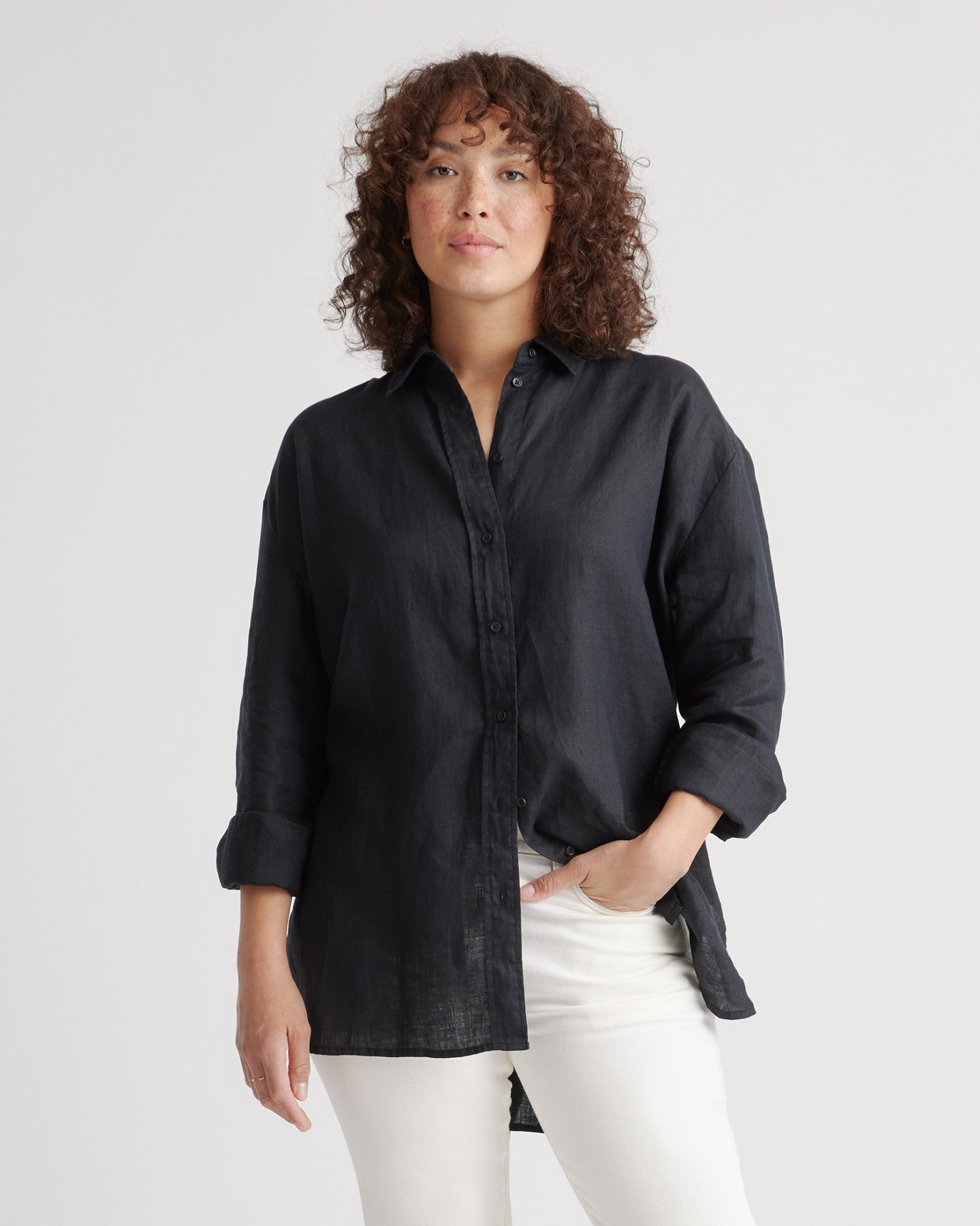 Meet your new go-to piece for effortless, relaxed style - the 100% European Linen Long Sleeve Oversized Shirt. Made from high-quality sustainability grown linen, this shirt is lightweight, breathable, and incredibly comfortable to wear. The oversized fit is on-trend and flattering, giving you the freedom to move and breathe while still looking chic. Wear it as a beach cover-up, pair it with jeans for a relaxed weekend look, or dress it up with tailored trousers for a more formal event.