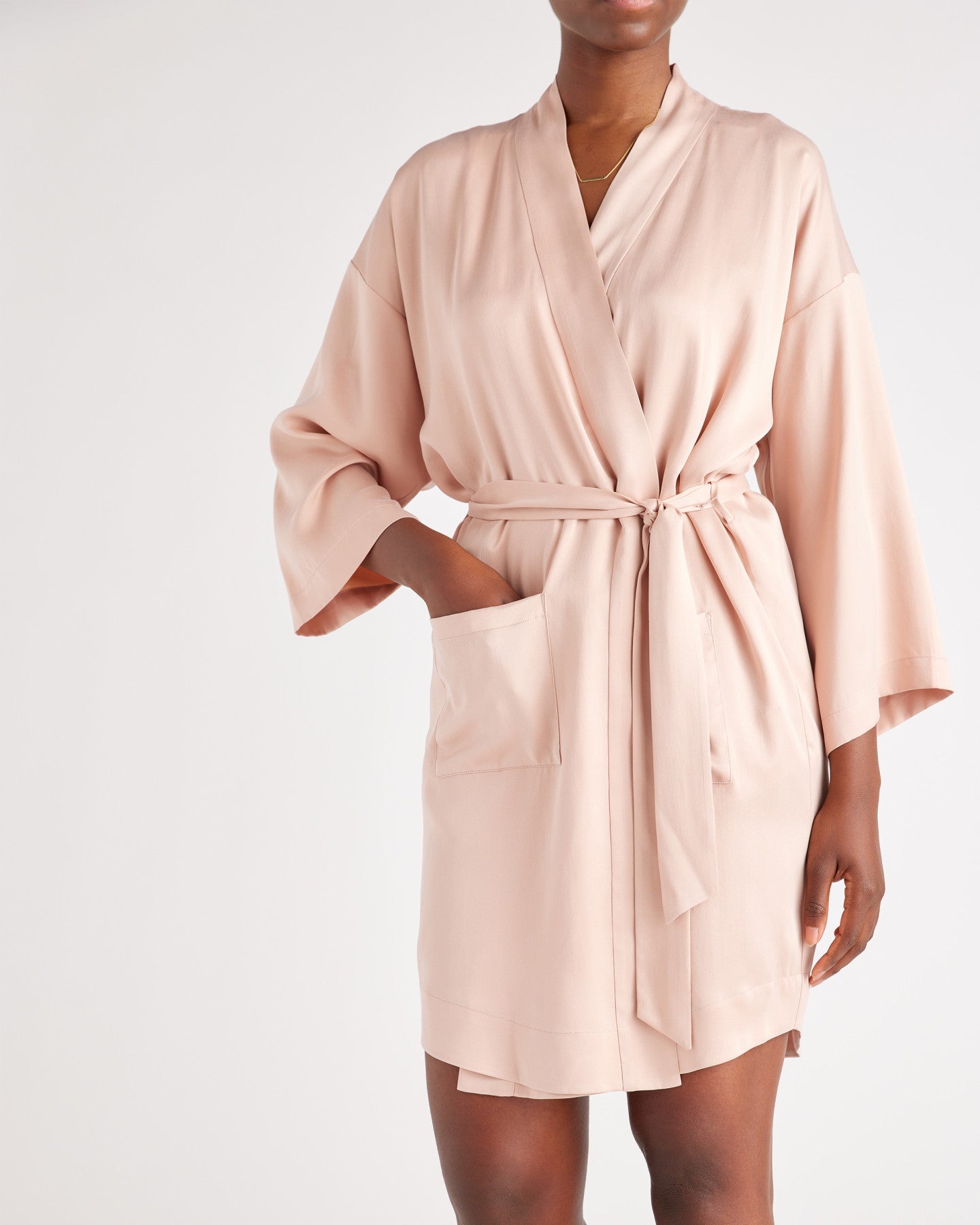 You can now live your best life, with less effort. This dreamy, silk robe is supple and super-chic. Made from 100% mulberry silk that's washable and low maintenance. Plus, silk fiber contains 18 kinds of amino acids that make it amazing for skin nourishment, hypo-allergenic, and naturally thermoregulating to help maintain body temperature.