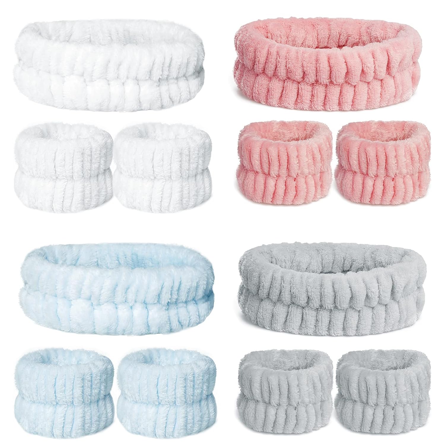 12 Pieces Spa Facial Headband Women Makeup Headband Girls Washing Face Headband Soft Microfiber Spa Wrist Washband Ladies Spa Hair Wraps for Washing Face Shower Makeup Bath (Pink, White, Blue, Grey)