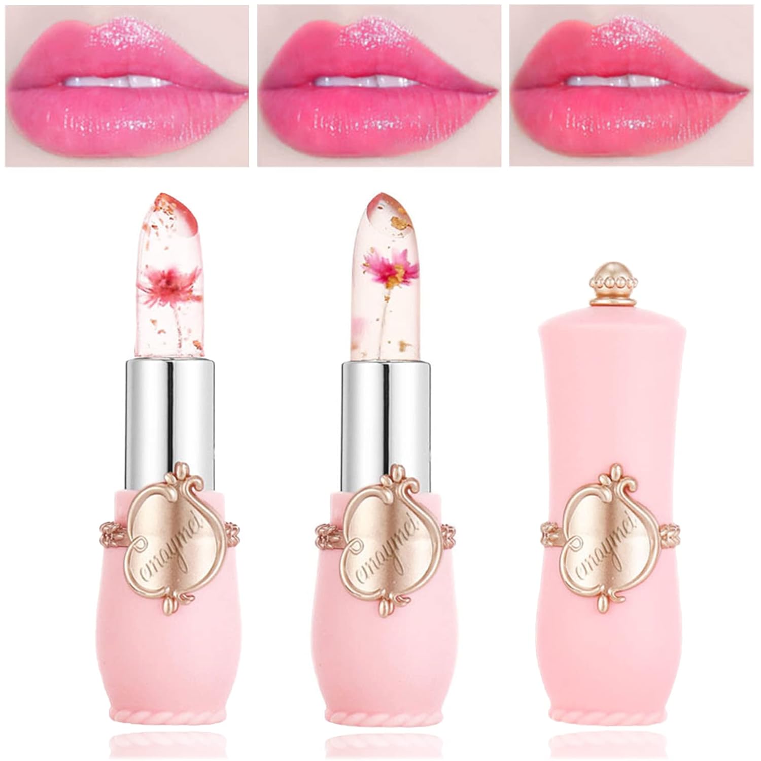 2Pcs Clear Crystal Flower Jelly Lipstick,PH Magic Temperature Color Changing Lipstick,Lip Gloss,Long Wear Nutritious Tinted Lip Balm,Moisturizing Lip Stick Makeup Set (Set A)