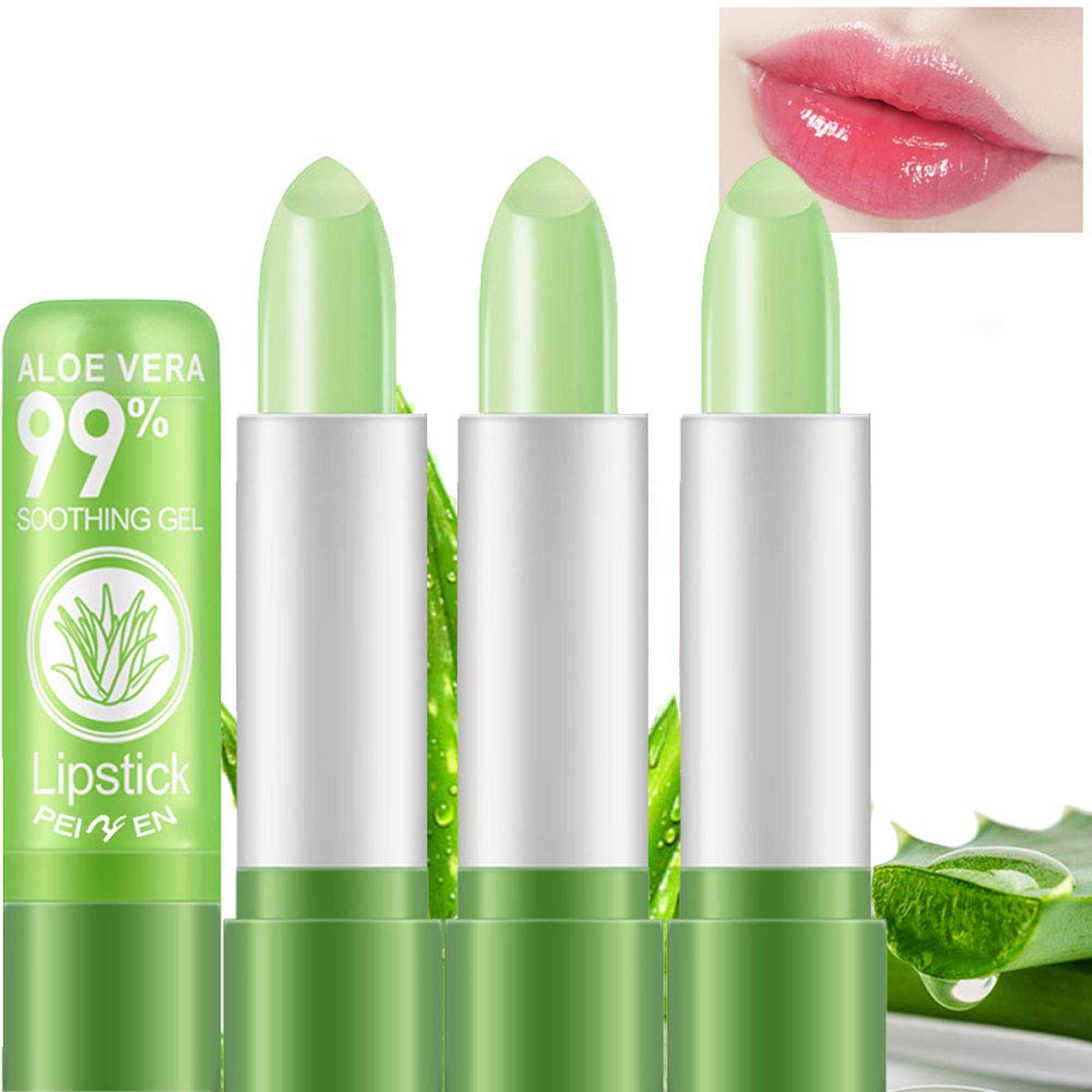 3 Pack Aloe Vera Lipstick, LemonSac Long Lasting Nutritious Lip Balm Lips Moisturizer Magic Temperature Color Changing Lip Gloss (3Pcs)