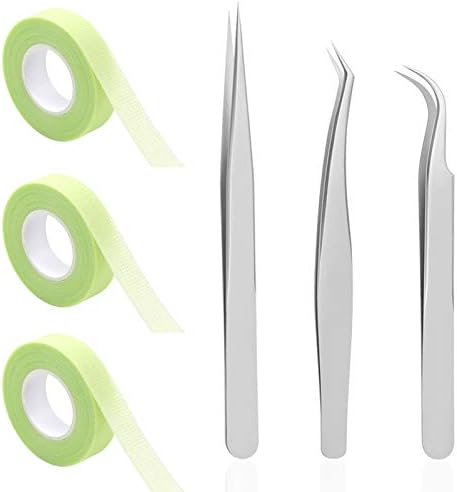 Package includes: Includes 3 rolls of lash extension tapes, each roll of eyelash extension tape is 0.5 inch in width and 10 yards (9m) in total length, with 3 pieces tweezers of pointed and curved style.