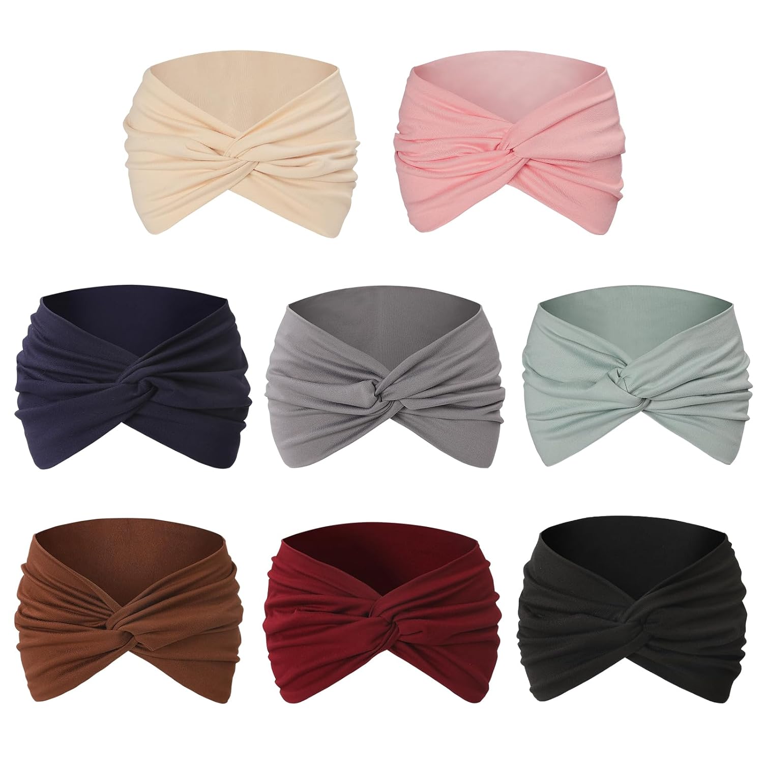 8 Pack Wide Headbands for Women Girls, Soft Stretchy Turban Headband Hair bands Head Bands Hair Wraps with Twisted Knots for Clean Face Makeup Yoga Workout