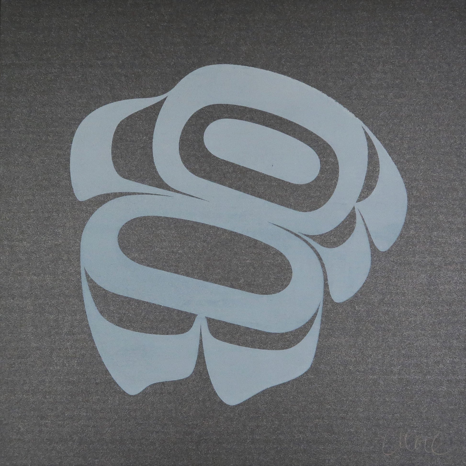 8½” x 8½” baby Formline designs printed in various colors on silver paper by artist Crystal Worl.