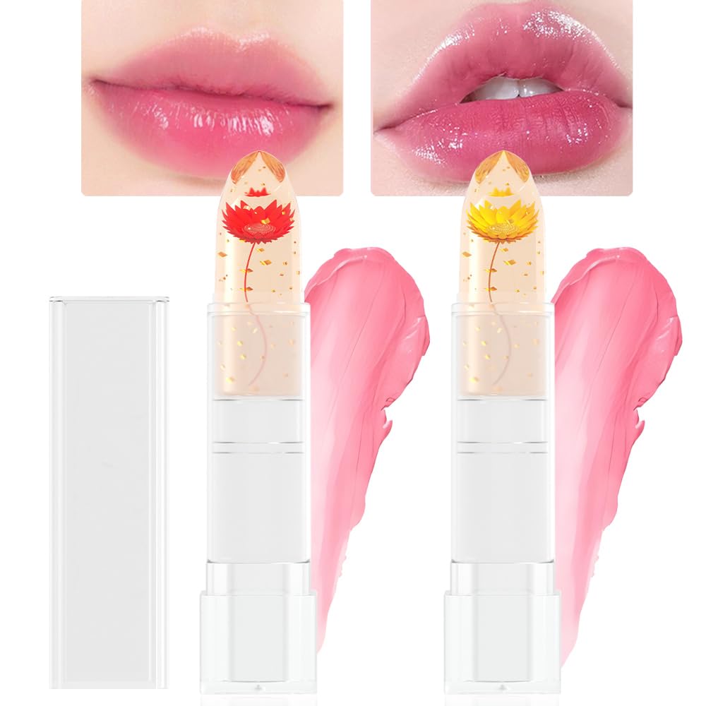 ✅【Item Type】2 pieces flower jelly lipstick set in 2 different colors ( Red & Yellow flower), Mood Color Changing lipstick Long Lasting Moisturizing Lip Stick Lip Moisturizer Lip Gloss Lip Makeup.