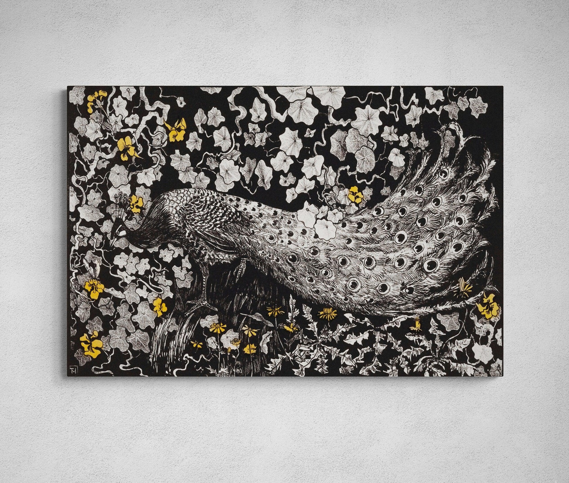 Black and White Print Canvas Art Peacock Wall Art Canvas Flower Painting Peacock Poster Wall Art Decor Home office wall art #C6520