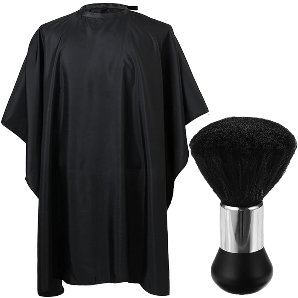 Borogo Professional Hair Cutting Cape with Neck Duster Brush, Salon Barber Cape, Hairdressing Accessories (Black)