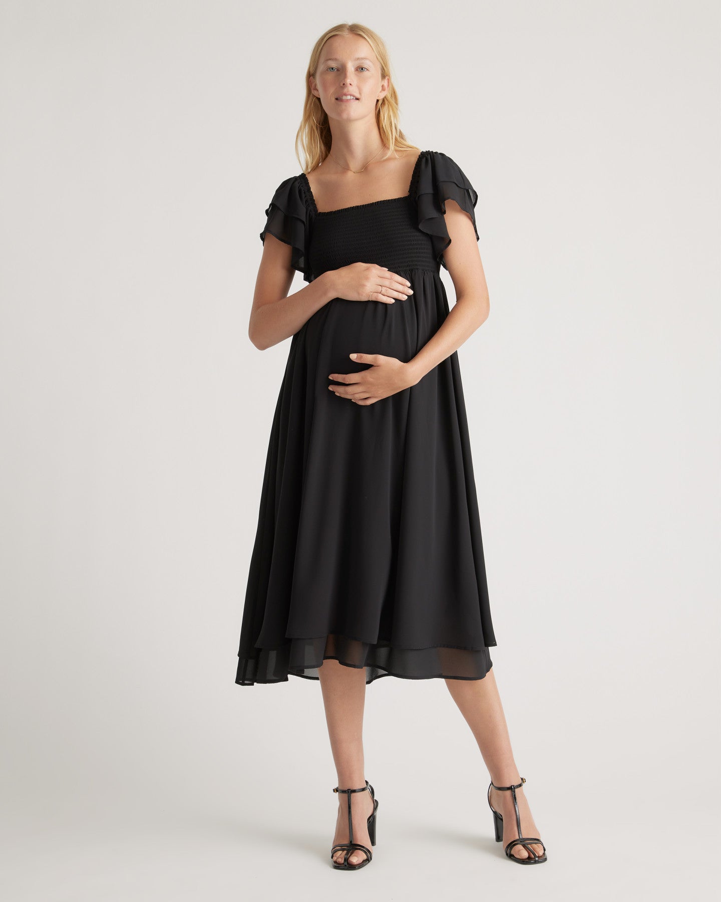Chiffon Maternity Smocked Flutter Sleeve Dress