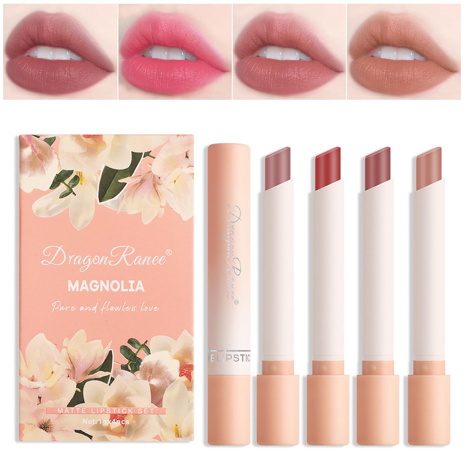 Cigarette Matte Lipstick,4 Colors Nude Velvet Air Moisture Lip Glossy,24 Hour Superstay Waterproof Long Lasting Lip Tint Stain Set, Lipstick for Women Makeup (Set D)