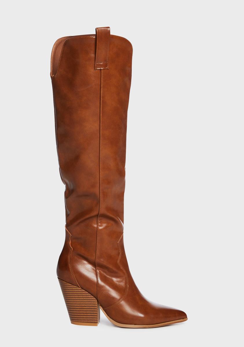 cuz time to wrangle up some fun. These cowboy boots have a vegan leather construction, a pointed toe design, block heels, decorative stitching, pull tabs, and side zipper closures.