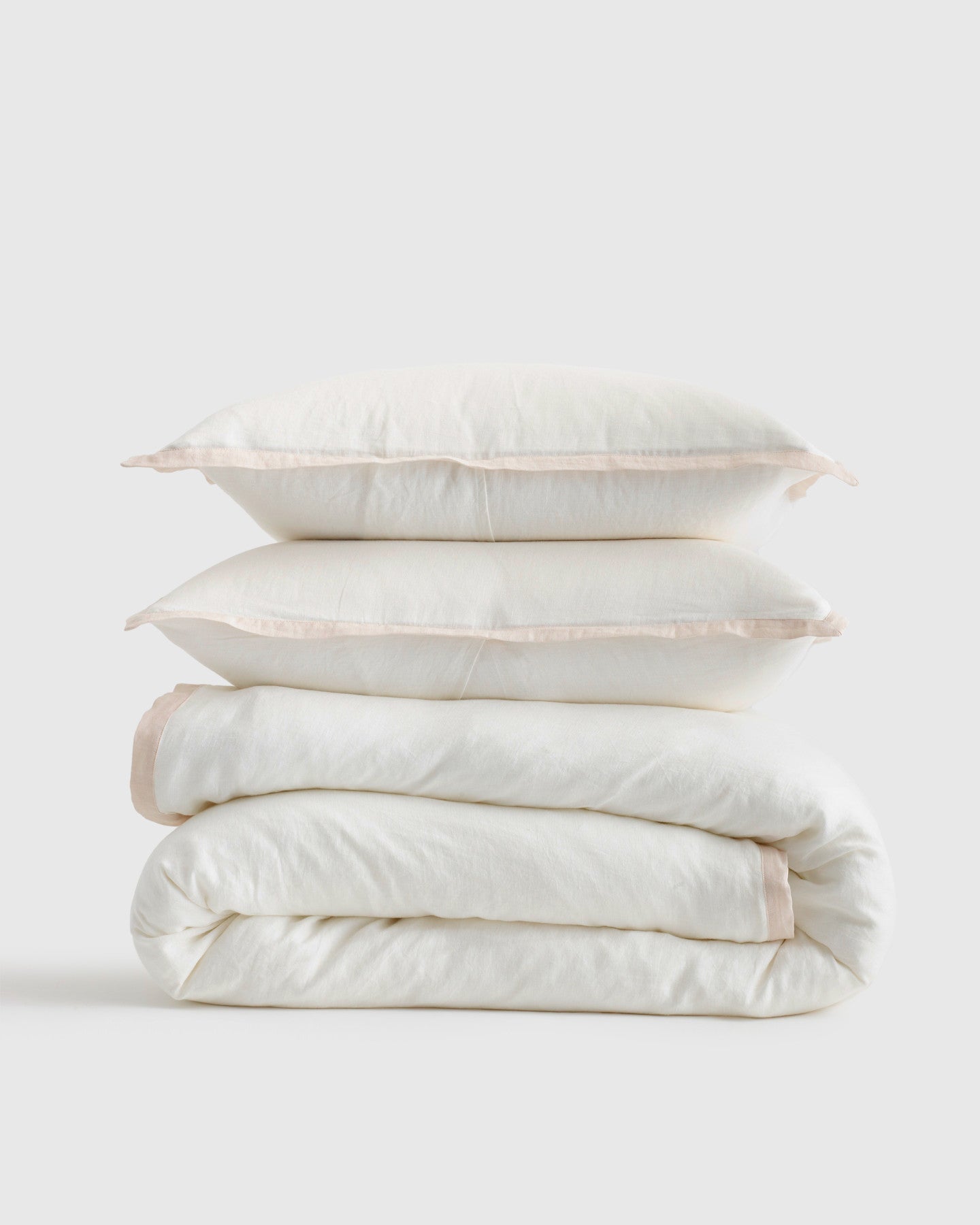 Rest in year-round luxury with our European Linen Contrast Flange bedding. Made from ethically sourced flax, this linen duvet cover set is crafted from the finest materials to ensure long-lasting quality, style, and comfort. The flange edge adds a defining detail to this otherwise relaxed bedding with its pop of contrasting color. This unique feature instantly elevates and creates a striking look in any bedroom. The European Linen Contrast Flange Duvet Cover Set is pre-washed for superior softness and a perfectly lived-in vibe, and only gets better over time. It's also remarkably breathable and moisture-wicking, making it perfect for every season.