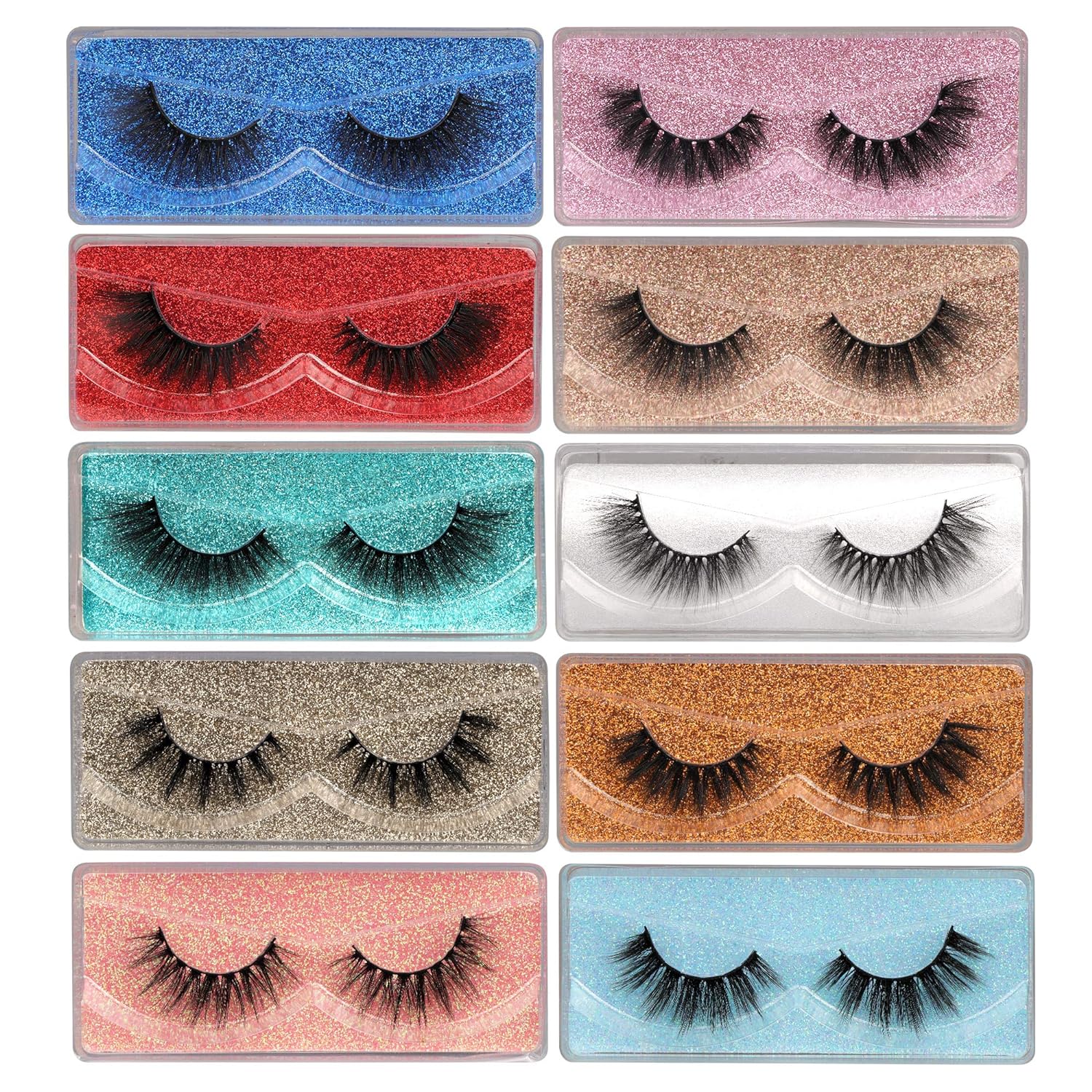 False Eyelashes Wispy 18mm Natural 3D Faux Mink Lashes Pack 10 Pairs 10 Styles Mixed Soft Reusable Fake Eyelashes Bulk with Glitter Portable Boxes