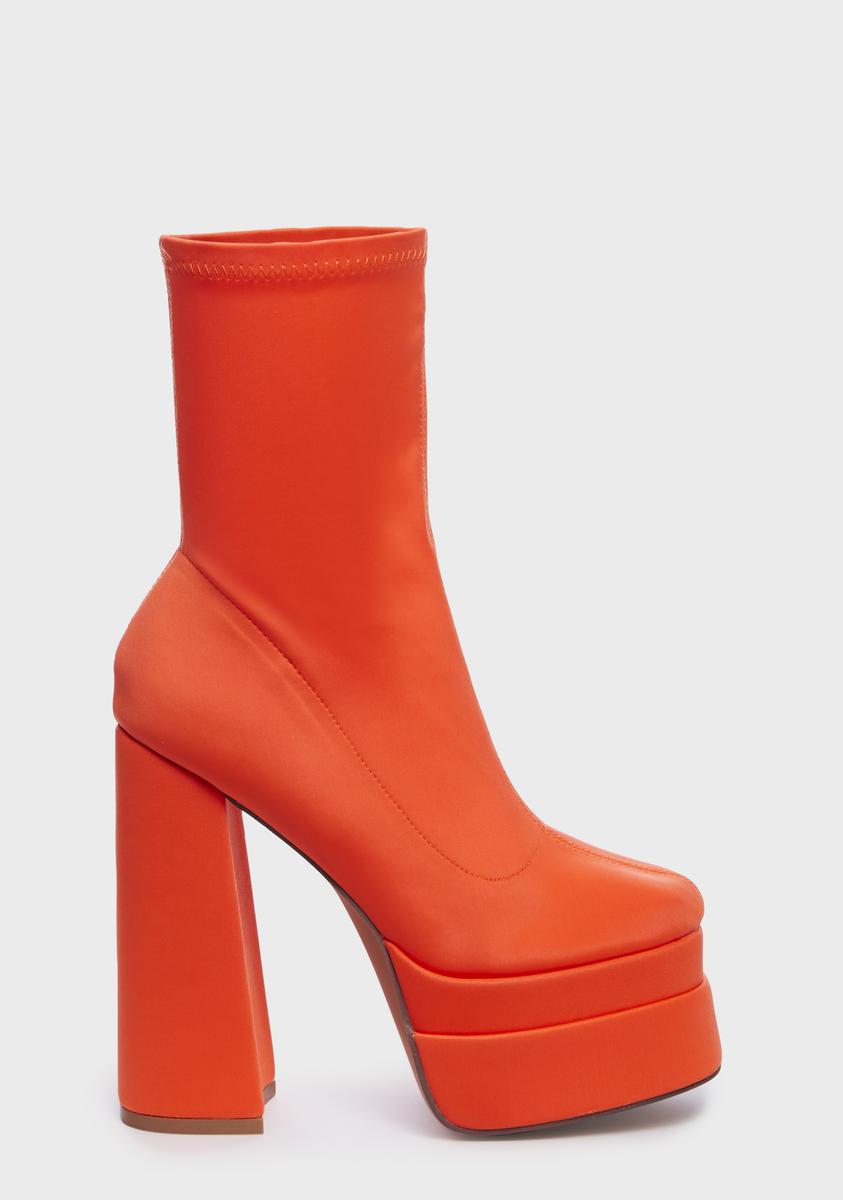 cuz you're living it up! These boots have a satin construction, double stacked platform soles, block heels, and side zipper closures.