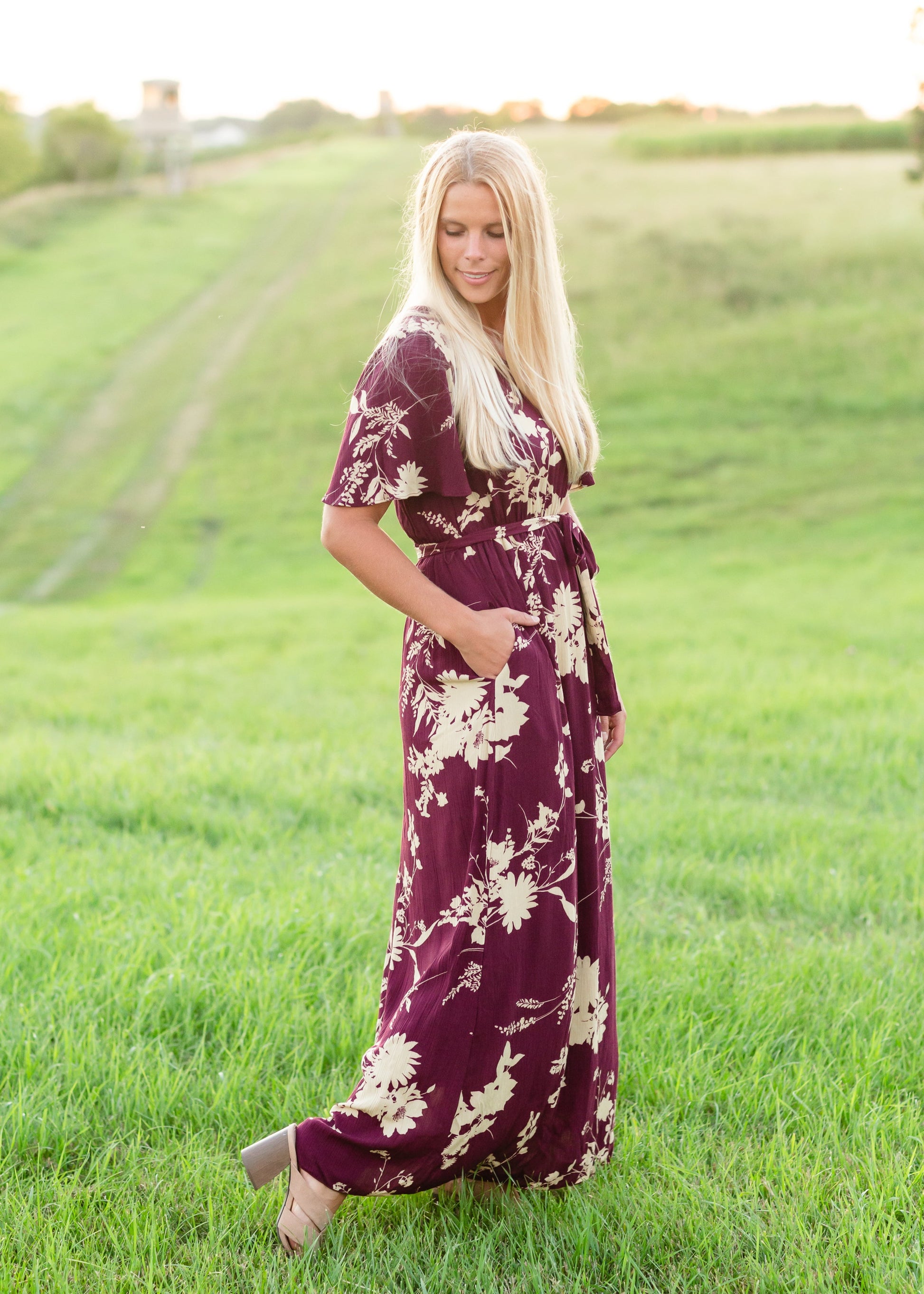 This Floral Flutter Sleeve Plum Maxi Dress is oh so pretty! It has an ivory floral pattern with?a warm plum color that?is perfect for the season! It's comfortable for all day wear, has a figure-flattering fit, and features a v-neck?cute and fabric waist tie! Pair this dress with wedges or sandals for?an easy-going style!