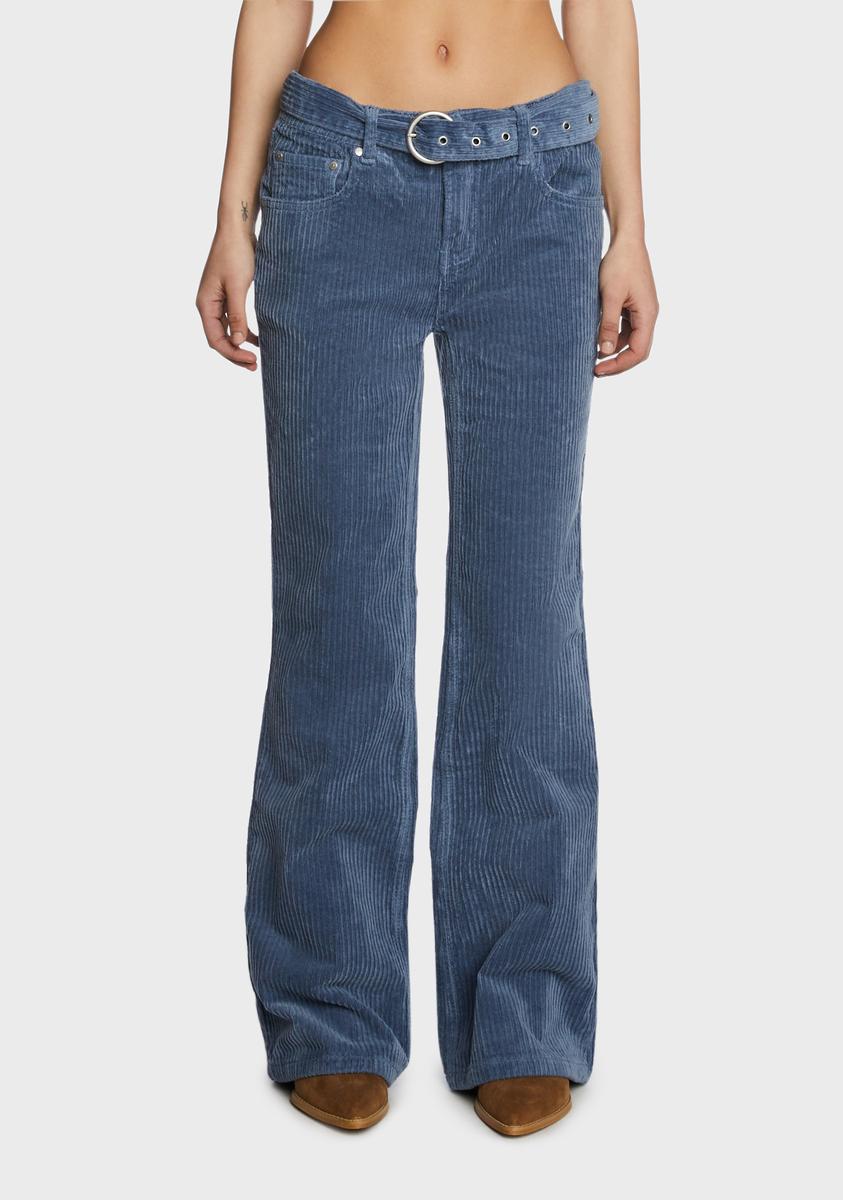 cuz you're a crowd pleaser. These pants come in a corduroy construction, with a low waist, flared hem, pockets, and waist belt.