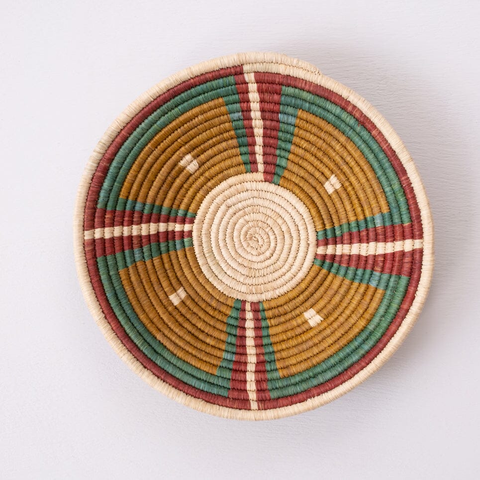 Handcrafted by women artisans from the Batoro tribe living in the very rural mountains of Western Uganda. These weavers are a part of a cooperative that provides training to single mothers, widows and other marginalized women who are subsistence farmers and weave baskets to provide additional income. Natural dyes are made from various plant materials grown in artisan’s villages. The women grow, harvest and make all the natural dyes which take a great deal of knowledge and skill to produce. Weavers hand make each basket from home while tending to other household duties. Baskets can take days to weeks to complete with artists weaving 3 or so hours per day while balancing other responsibilities.