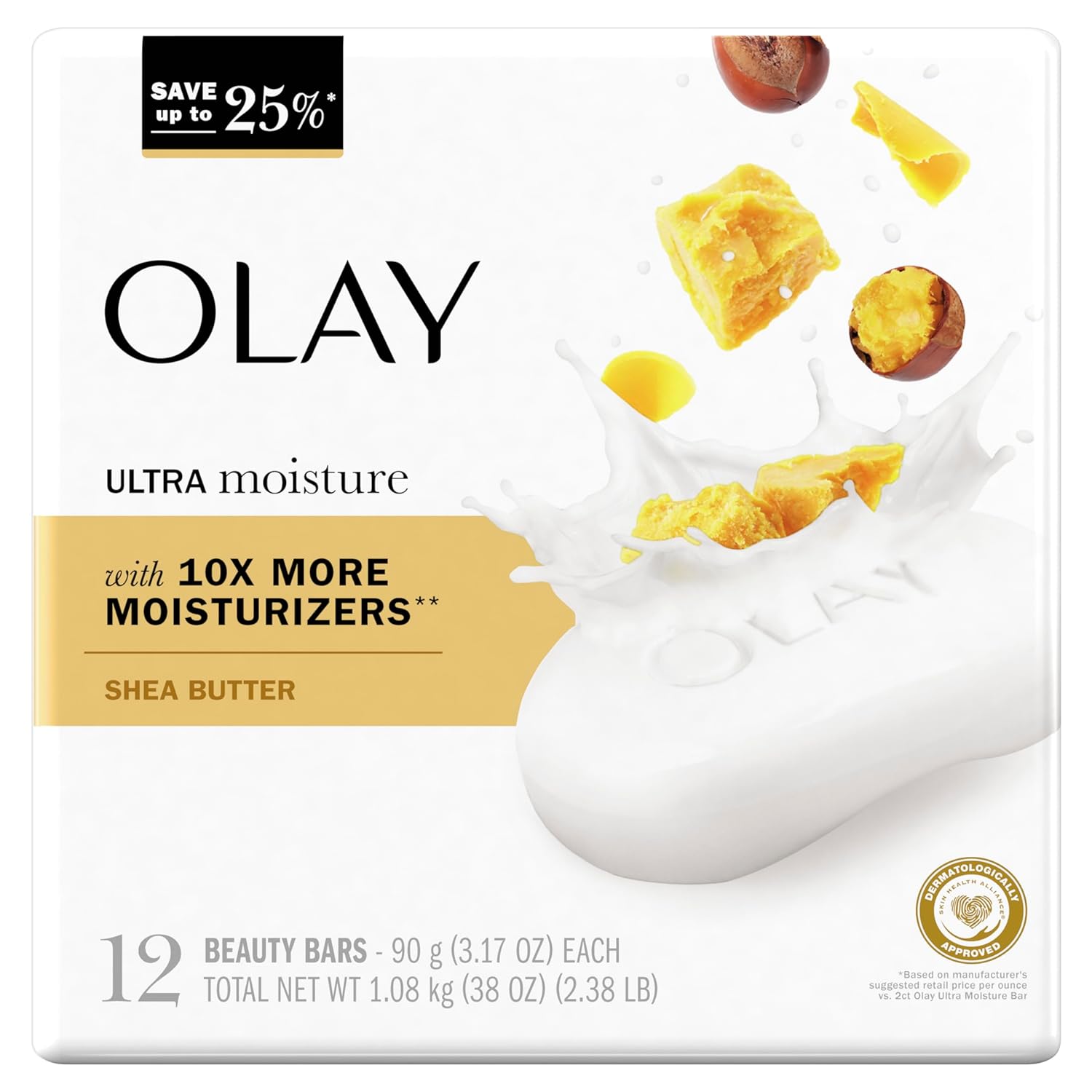 Olay Moisture Outlast Ultra Moisture Shea Butter Beauty Bar with Vitamin B3 Complex, 3.17 oz, (Pack of 12)