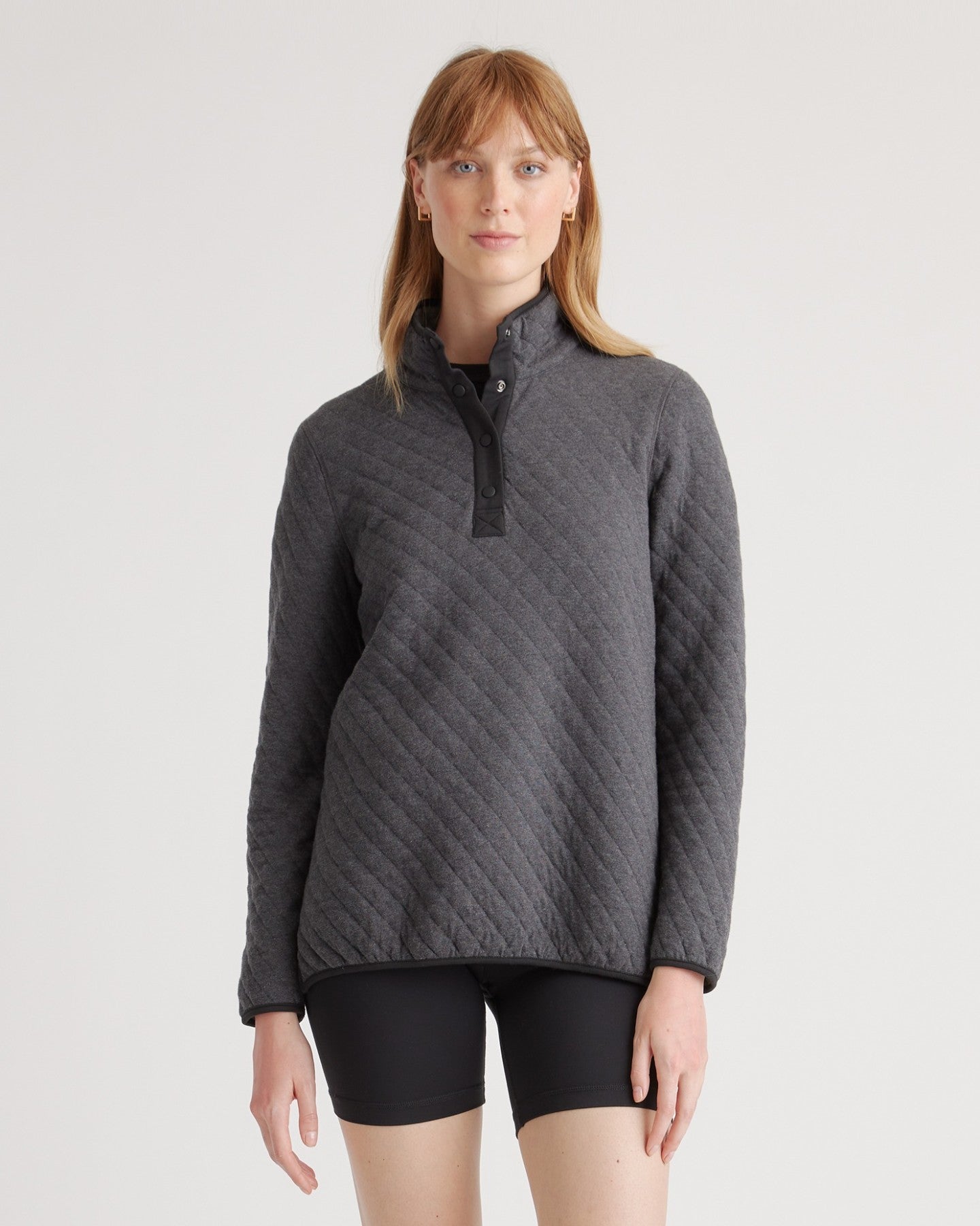 Our Reversible Quilted Pullover combines soft comfort and casual style. Made with organic cotton and recycled polyester, this pullover is gentle on the skin and on the environment. Featuring diamond quilting details and double-layered fabric, this mid-weight layer provides extra warmth and comfort for those chilly days. Fully reversible so you can switch up your look effortlessly, this pullover is sure to be your go-to layering piece for years to come.