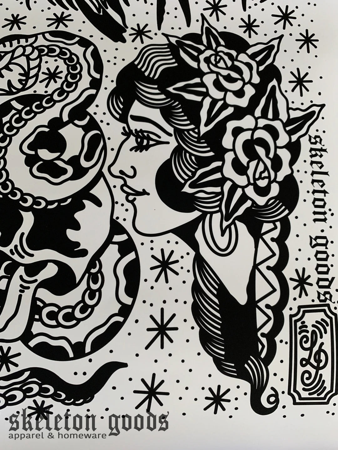 All designs are created by the tattooer and Owner of Skeleton Goods, @loopimble.