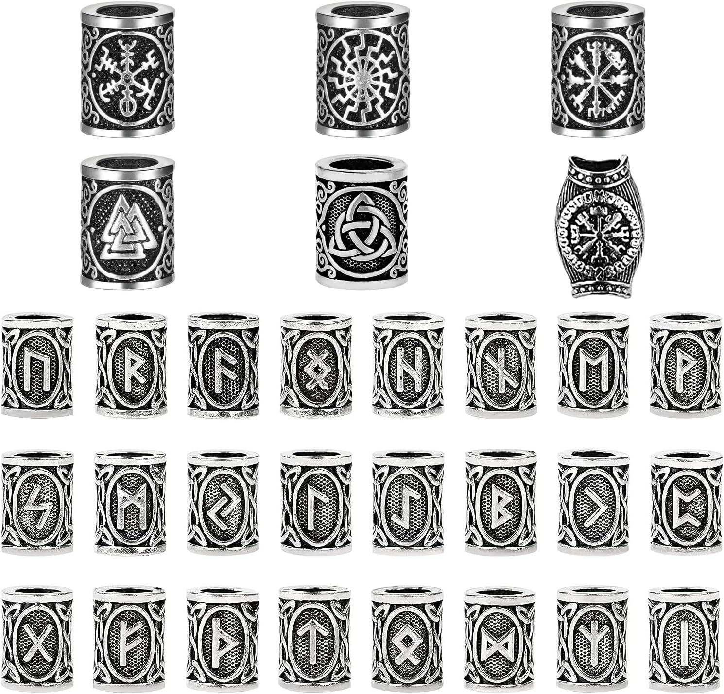 Premium Viking Hair Beads,Dreadlock Craft Beads Dread Beads,Beard Beads for Men,Viking Hair Accessories Rune Beads for Hair Braids Braiding Bracelet Pendant Necklace,Paracord Beads Beard Rings