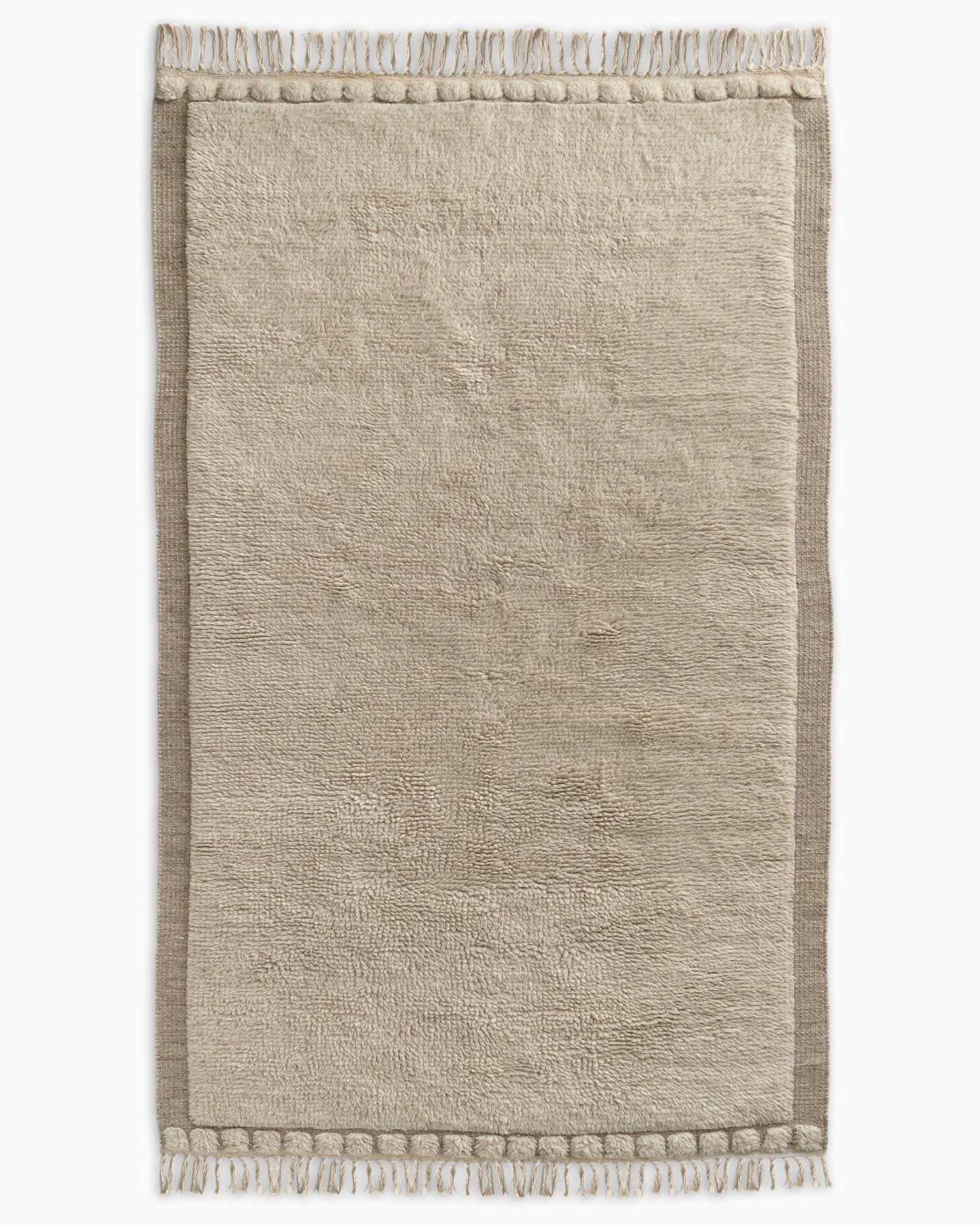 Super soft shag and subtle style. Saje is here to warm up your floors with contrast border in cozy but neutral tones. She's got classic fringe edges and is a versatile, calm addition to your home.