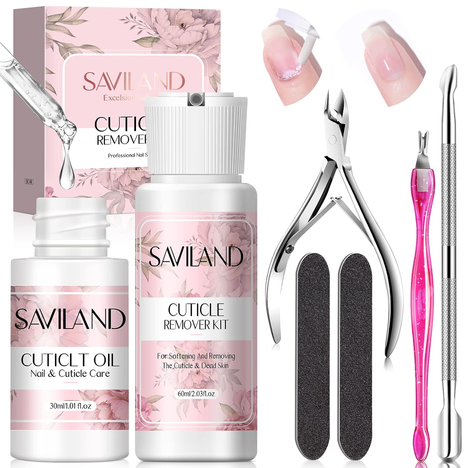 SAVILAND Cuticle Remover and Cuticle Oil Kit Ð Nail Care Kit with Cuticle Remover Liquid & Cuticle Oil Cuticle Trimmer for Cuticle Softener & Moisturize Manicure Kit for Home Use