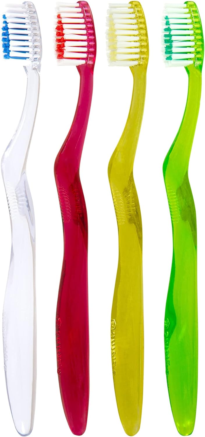 Shield Care Clarity Expert Manual Toothbrush for Sensitive Gums and Strong Teeth, Made with Food Material, Medium Bristles (Red, Green, Yellow, White) 4 Count (Pack of 1)