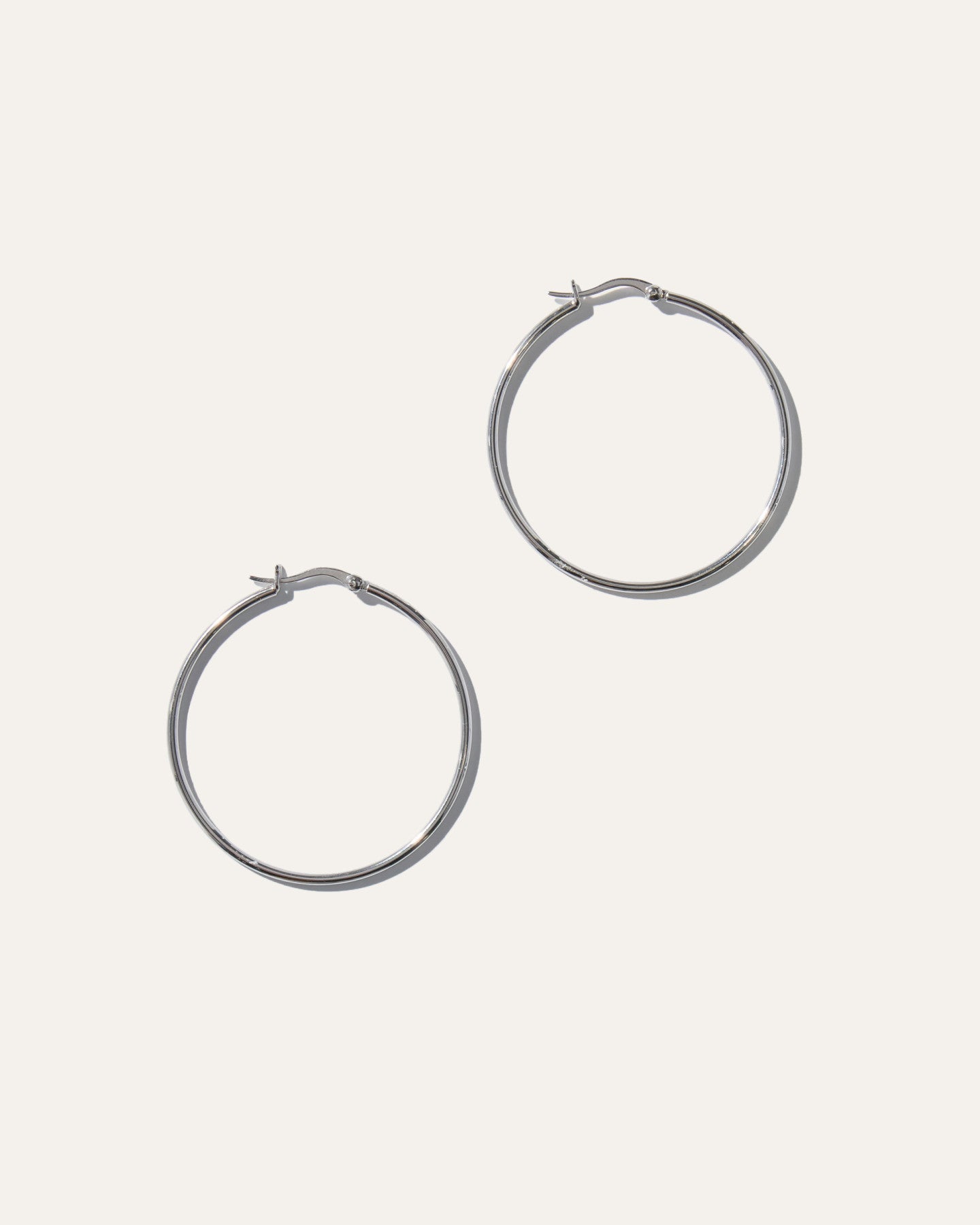 Our Silver Statement Hoop Earrings: a must-have to level up any look. Made of 100% recycled sterling silver and polished to perfection, your effortlessly cool “jeans and tee�?look will never be the same again. An everyday style for exceptional value. That’s what we call a win-win.