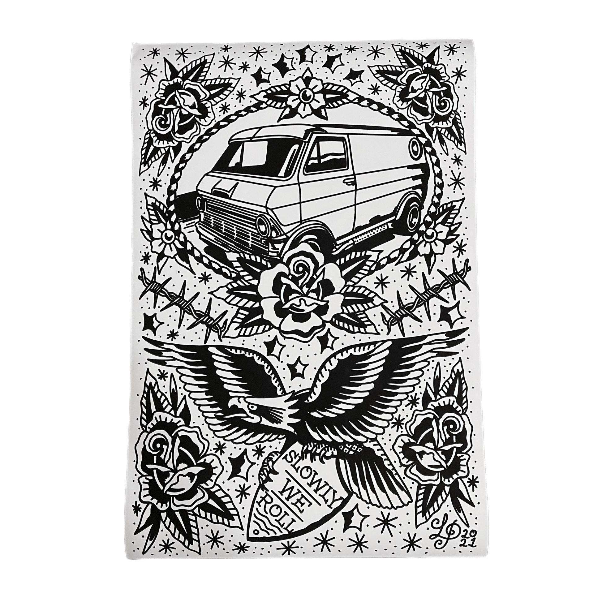 A clean and contemporary take on a traditional flash print. Our Black & White Tattoo Flash Collection captures the essence of classic tattooing, featuring bold lines and striking imagery from traditional motifs to contemporary designs. If you're drawn to the simplicity of black ink, its easy to fall in love with these pieces!