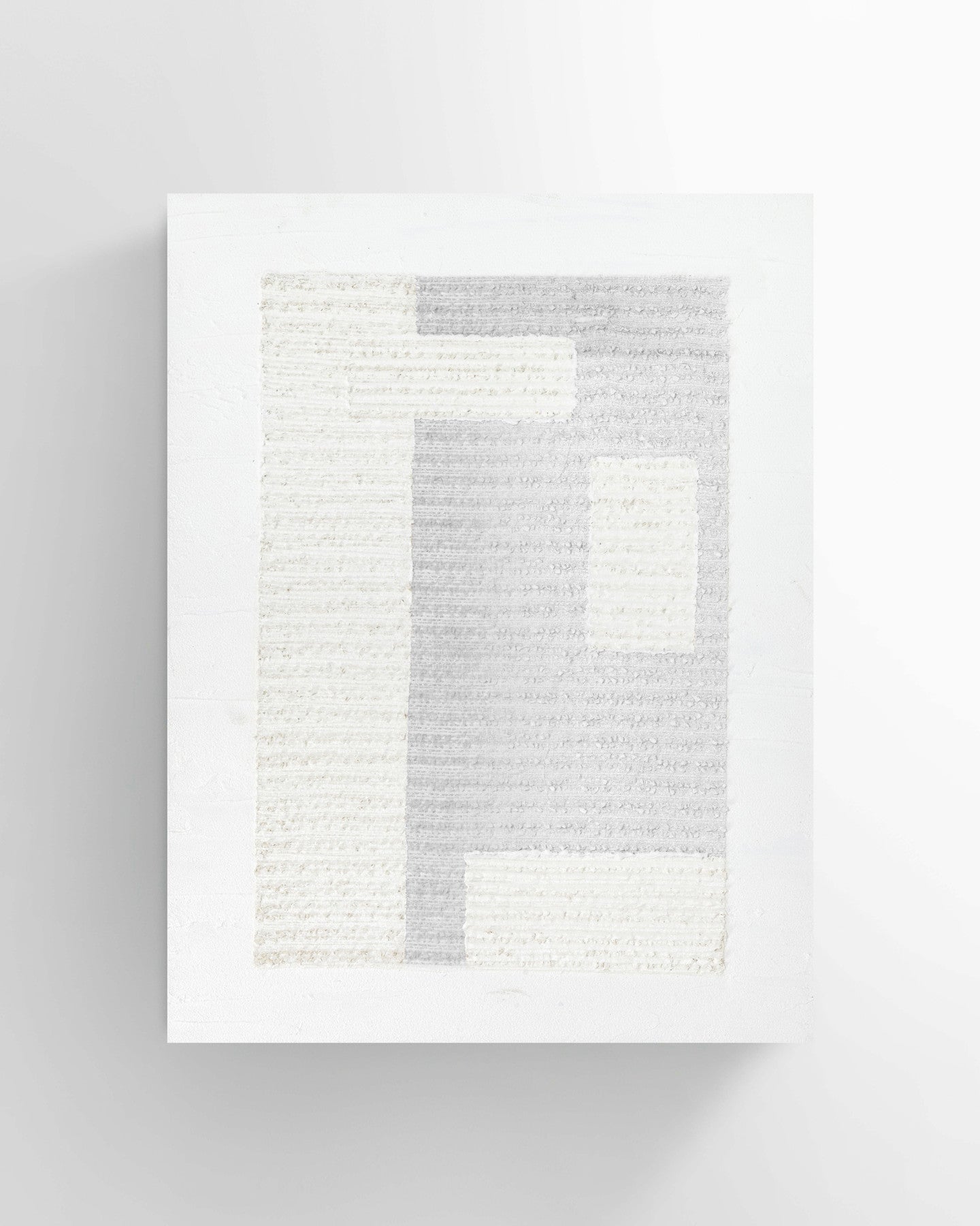 A unique study in minimalist color blocking, our large-scale Structure No. 2 Fine-art print with extensive hand-painted detailing contributes depth and detail to an otherwise understated piece. The rich texture makes it a sleek addition to any well-appointed living room.
