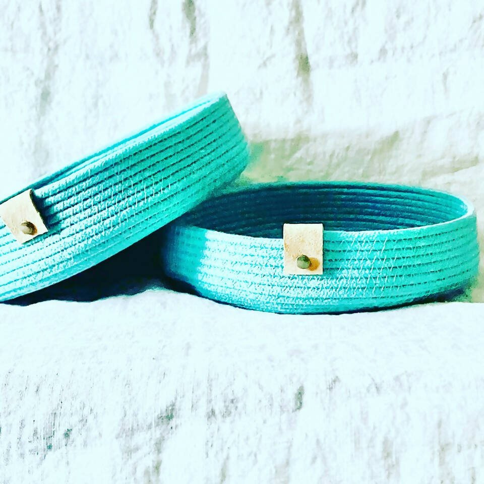 This rope tray makes a great home decor piece. Perfect for storing smaller items such as keys. Made with 100% cotton rope, this teal rope tray measures approximately 7.5” in diameter across the top and is almost 2” high. Please note that each piece is unique in shape and design. Spot cleaning is only recommended since the rope will shrink if placed in hot water. Hard stains may be removed with a small amount of baking soda and warm water.
