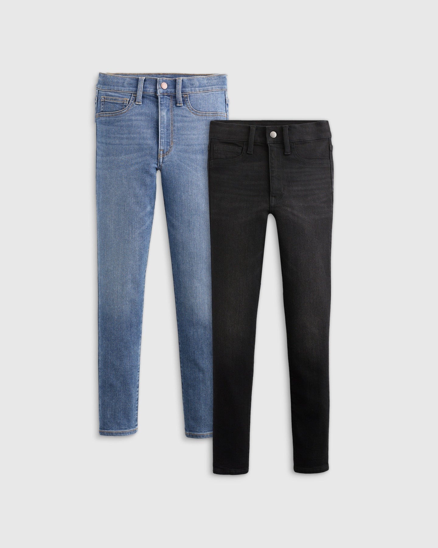 Two fashion-forward jeans, endless outfit options. Our EcoStretch High Rise Super Skinny Jeans are designed with a high-rise waist for a comfortable, flexible fit. Responsibly made with sustainably grown fibers, they're a smart choice for your child and the planet. And with two distinct washes, this bundle makes sure you always have an extra pair on hand.