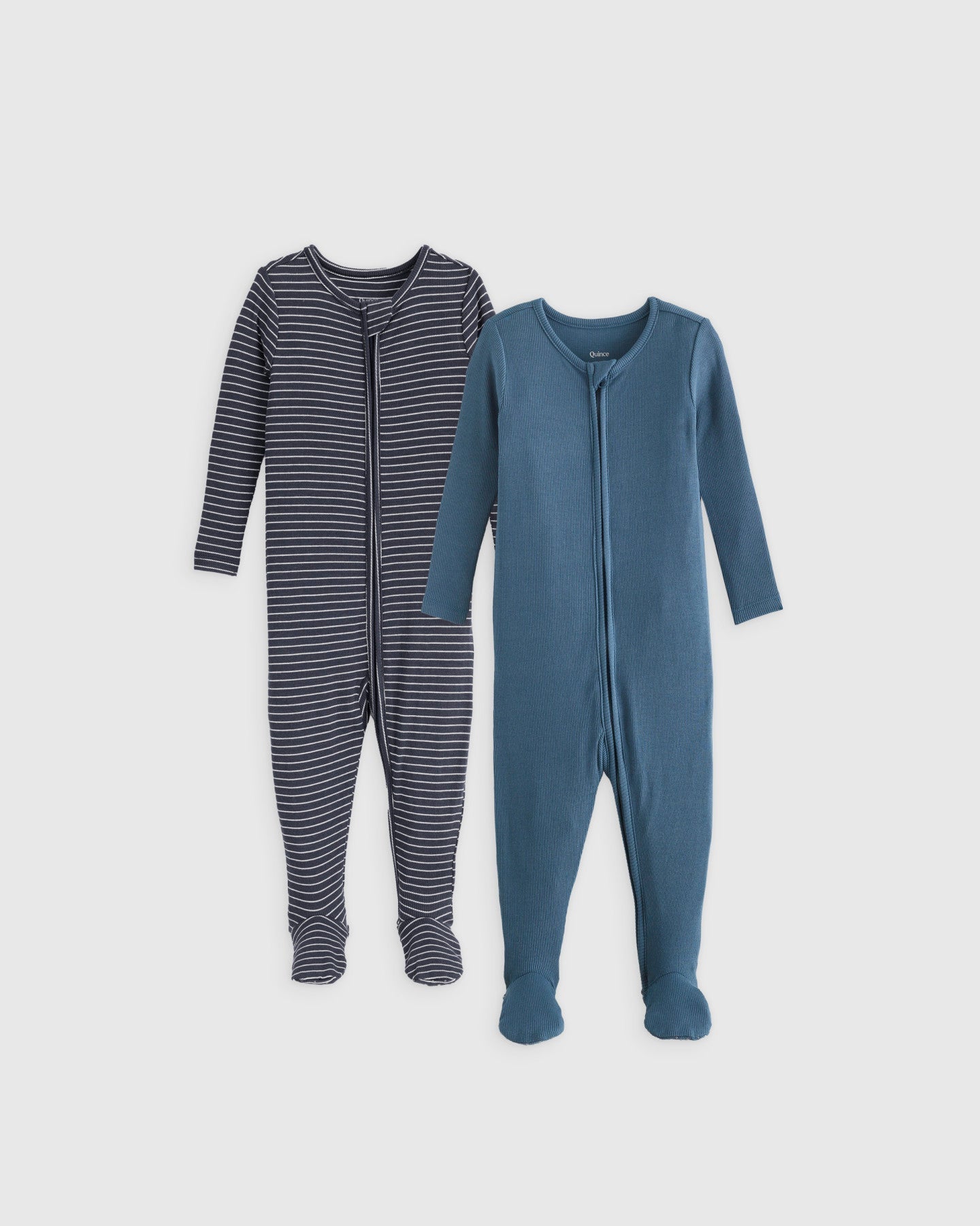 Give your baby a dose of soft-comfy-cozy with our two-pack of Softest Rib Footie Pajamas. Made from a soothing blend of bamboo-derived viscose and organic cotton, these jammies bring comfort and breathability to the bedtime routine. The ribbed texture is designed to keep your little one snug and comfy, making bedtime a little bit more of a dream.