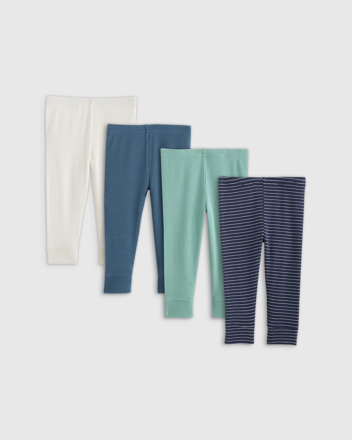 Keep it comfy on the daily with this four-pack of Soft Rib Leggings, designed just for baby. Made from organic cotton and a blend of bamboo-derived viscose, these leggings are soft, breathable, and beyond cute. The four colors make it easy to mix and match with your baby's other basics.