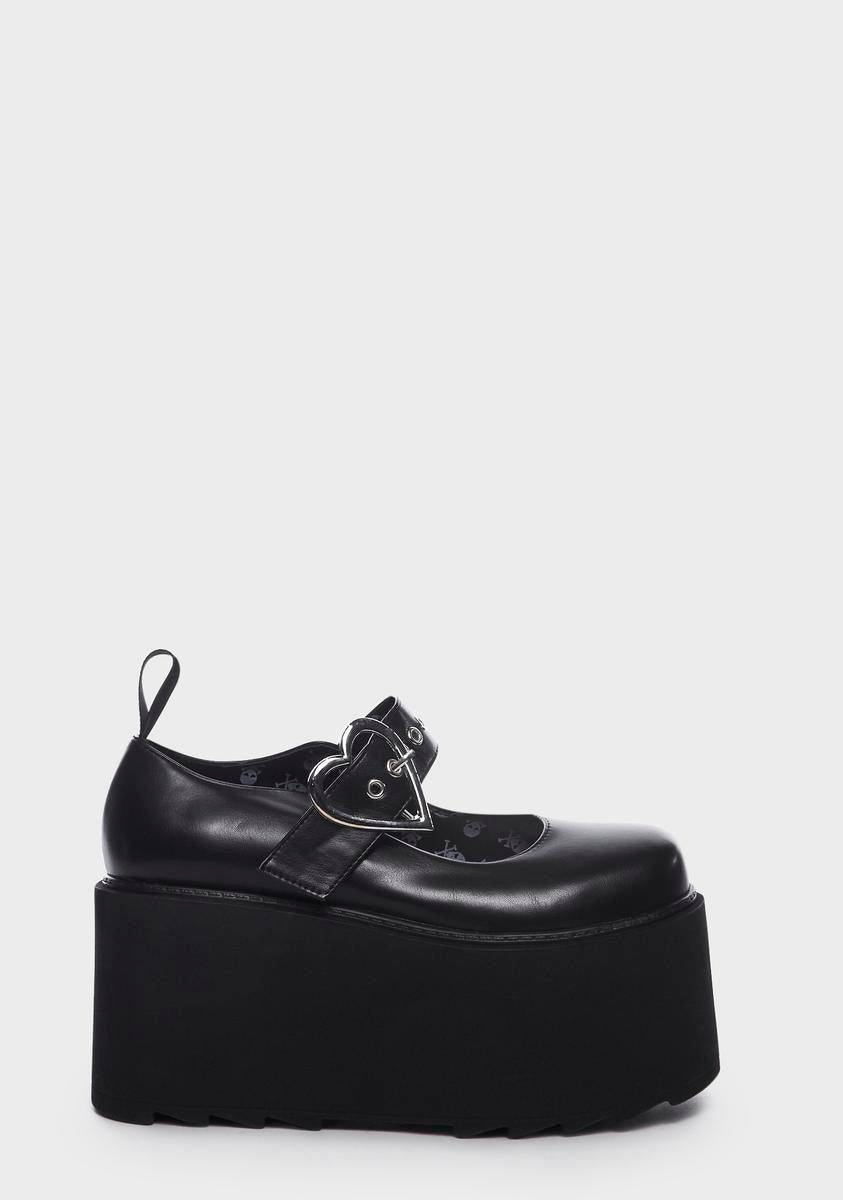 cuz you're here to intimidate. These shoes come in a vegan leather construction, with a chunky platform, and heart shaped buckle closure.