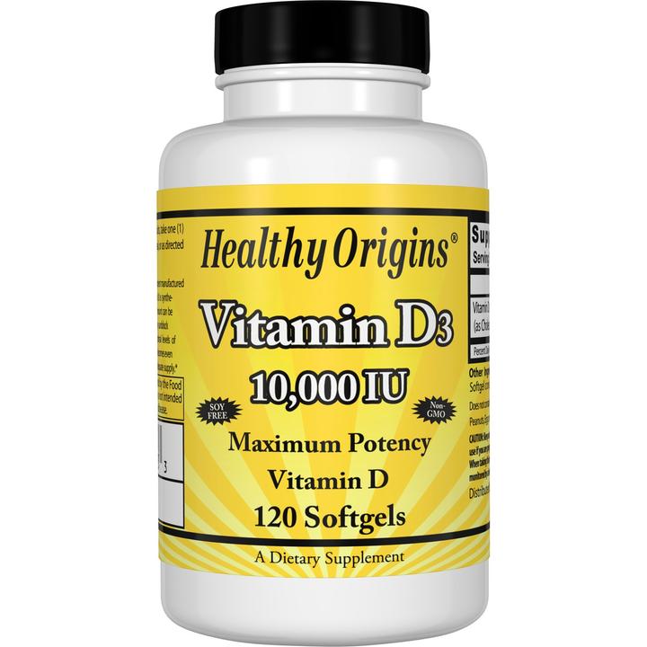 The two forms of Vitamin D supplements are D2 and the more potent D3. Health Origins® Vitamin D3 10,000 is key nutrient manufactured in a highly absorbable liquid softgel from. Vitamin D3 is synthesized in the body from sunlight and only a small amount can be obtained from food. The winter season and most sunblock products inhibit the body’s ability to produce optimal levels of Vitamin D. As a result, Vitamin D3 supplementation becomes even more necessary to ensure your body receives an adequate supply.