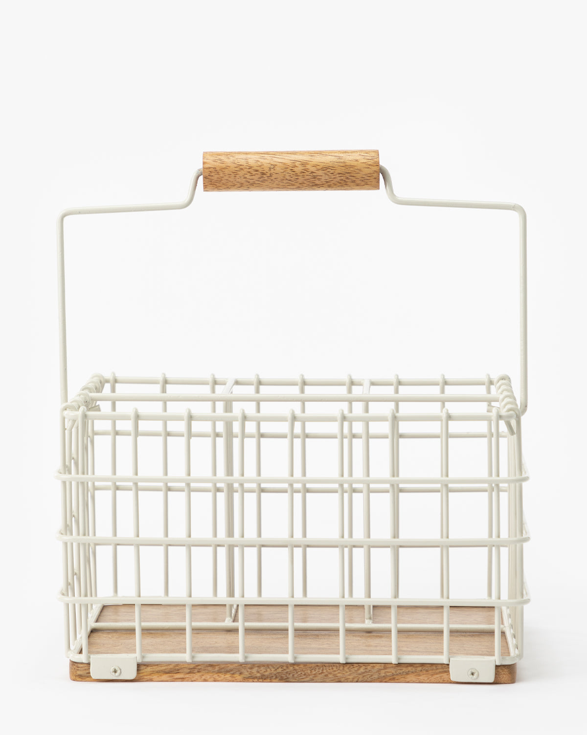 Kitchen organization can be as detailed as it is practical. The Westcott Wire Caddy has a timeless, simple design that suits every home. Its white-finished iron body is complemented by a wood base, lending an organic detail that will pair well with your decor.
