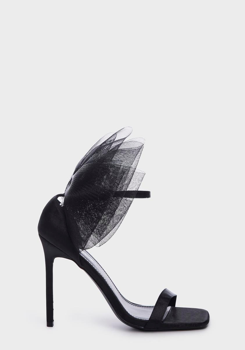 cuz you're sweet as can be. These shoes come in a satin construction, with a square open toe, and an ankle strap with a tulle bow detail at back.
