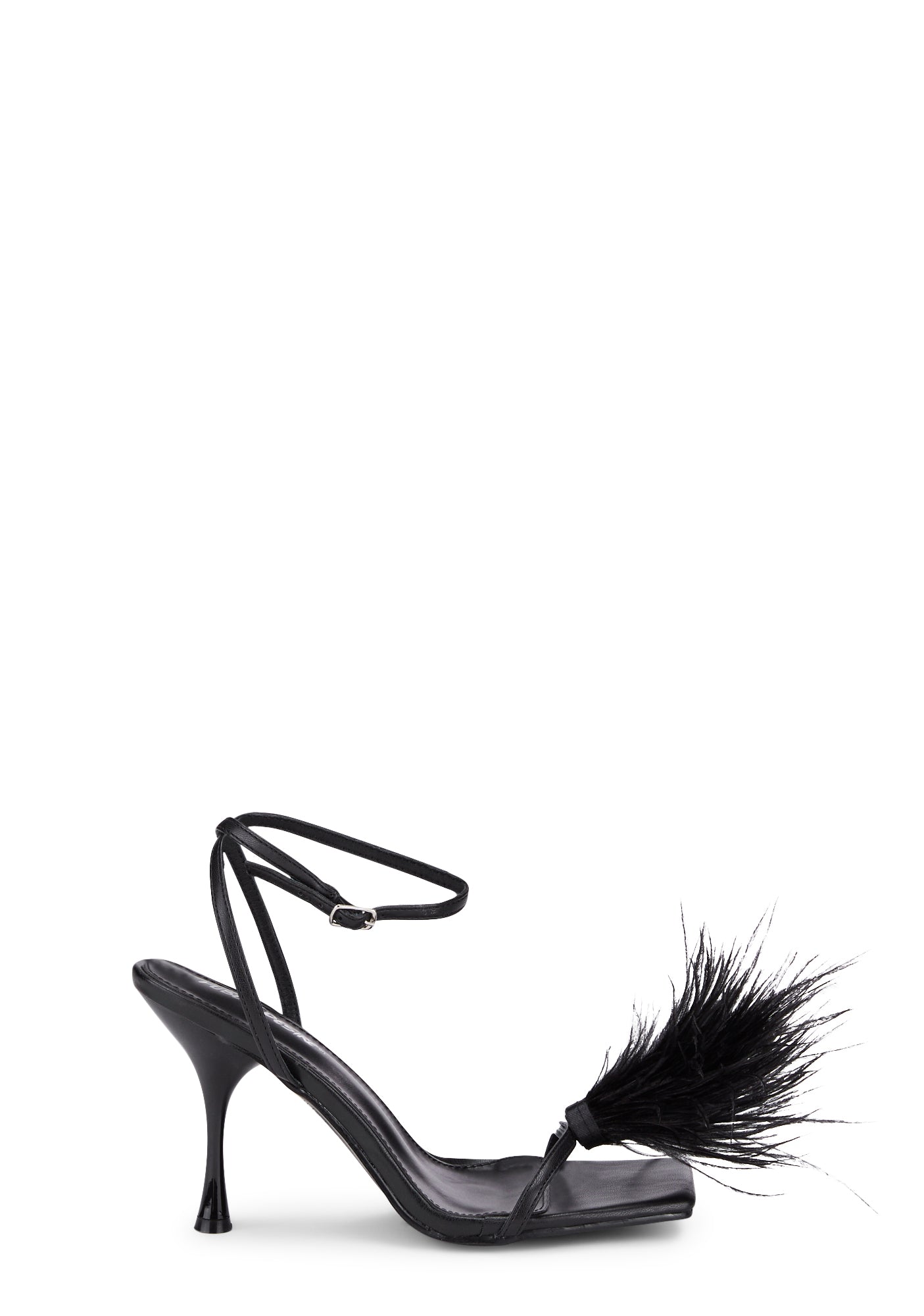 cuz you can't be tamed. Make a statement with these heels that have a wide fit, a square toe design, stiletto heels, faux feather detailing, and ankle buckle closures.
