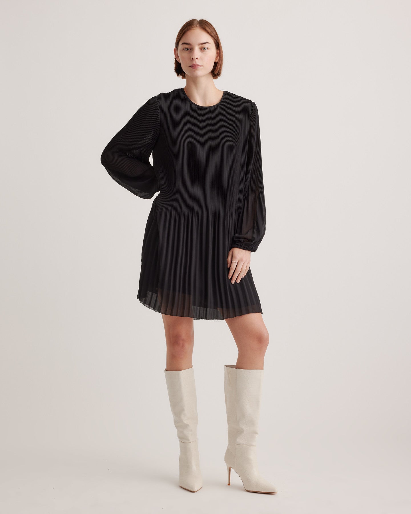 Chiffon Pleated Long Sleeve Mini Dress