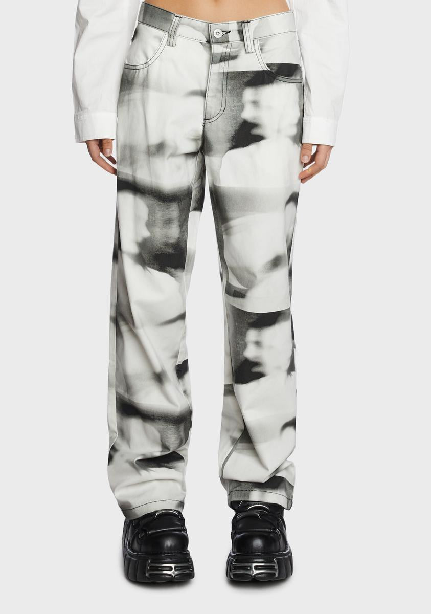 cuz no one does it better than you. These mid-to-high-rise pants have a non-stretch cotton construction, an exposed photography print all over, side and back pockets, and a front zip-fly closure.