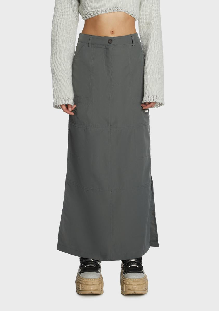 you want it, you got it, babe! This high-waisted maxi skirt has a front zip-fly closure and zippered leg pockets.