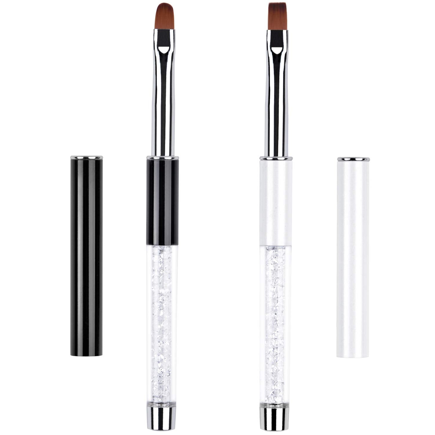 Ycyan 2Pcs Oval & Flat UV Gel Nail Brush Set Rhinestone Handle Professional Nail Art Design Brushes